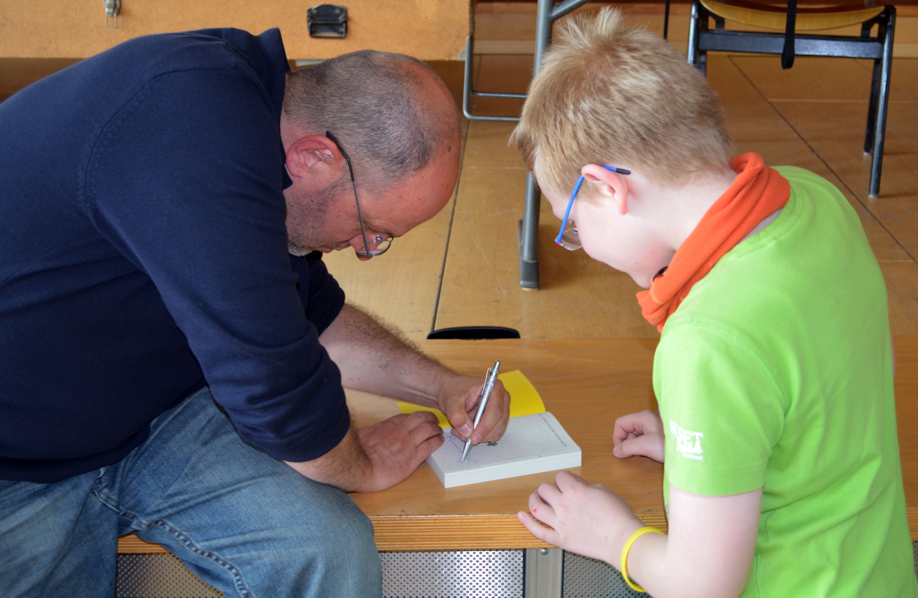 7. April 2014: Literatur für Schulen – Andreas Steinhöfel liest an der Edertalschule » Autogrammstunde