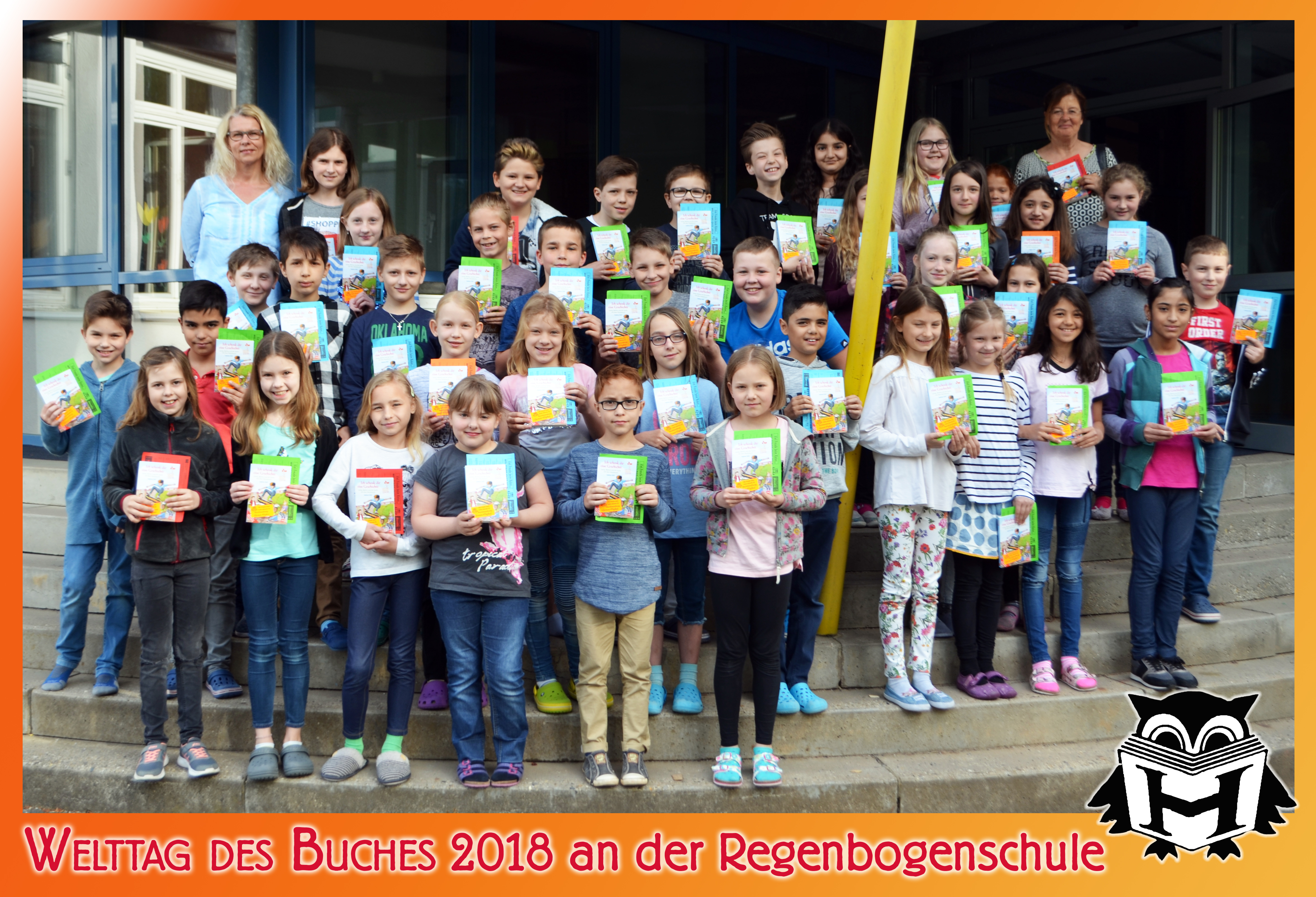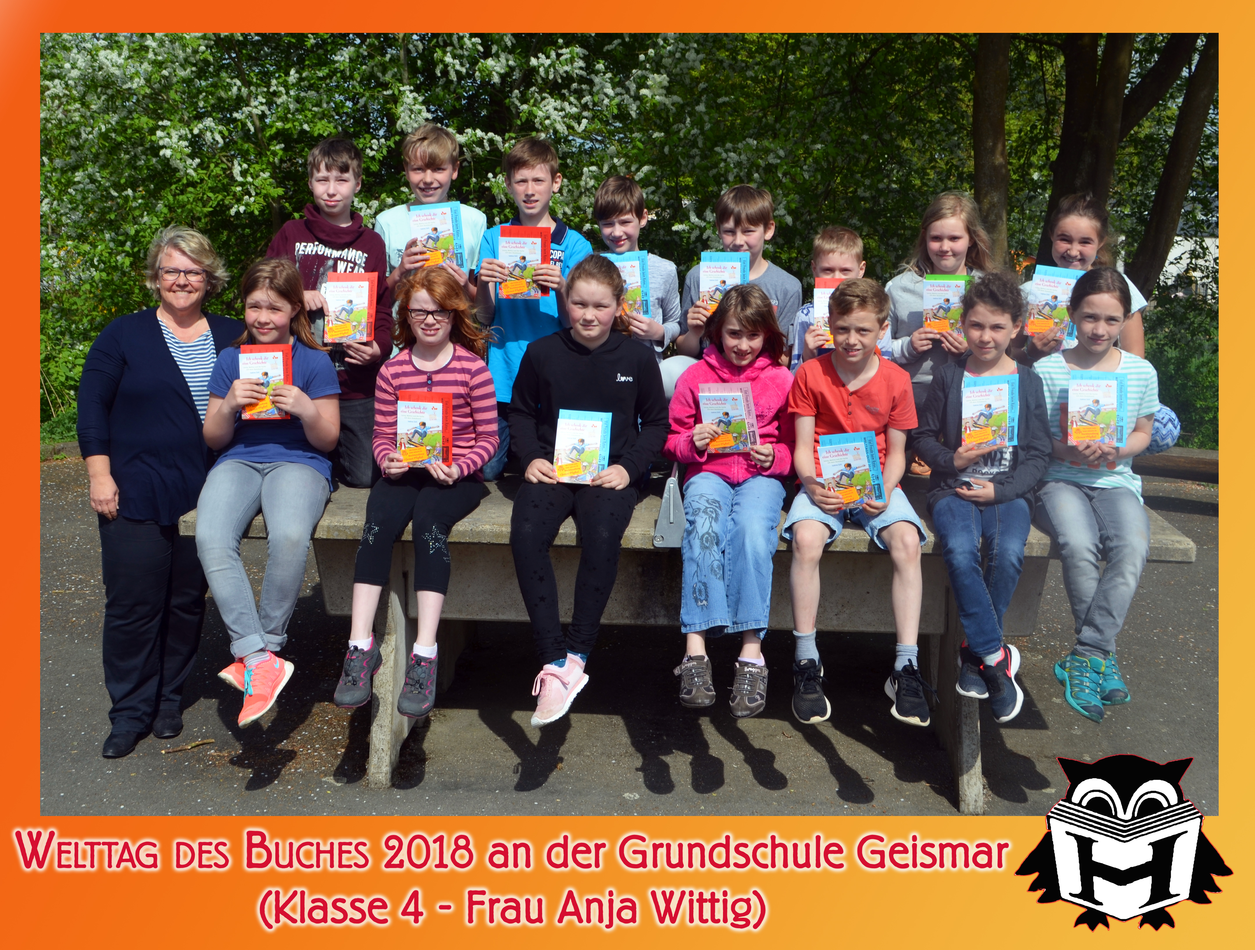 Am 24. April wurde mit den beiden 4. Klassen der Frankenberger Regenbogenschule munter über das Lesen und den Welttag des Buches geplaudert. Nach der Verteilung der Büchlein „Ich schenk dir eine Geschichte“ sowie einem gemeinsamen Foto mit den 44 Schülerinnen und Schülern wurde ich mit ganz persönlichem Handschlag jedes einzelnen verabschiedet: eine sehr schöne Geste und eine anrührende Erfahrung!